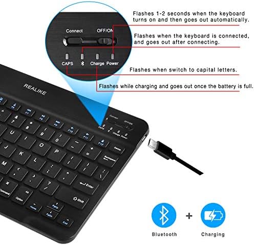 Realike universal wireless bluetooth keyboard compatible with 4 systems like IOS, Mac Os,Windows, Android including iPads, iPhones and Bluetooth-enabled Tablets, Laptops, and Mobile Phones etc