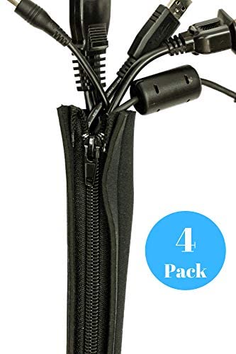 • Cable Sleeve, Cable Cover, Wire and Cord Hider – Set of 4 – Computer, TV or Desk Management – Home & Office Organizer Concealer – 20’’ – Premium Flexible Neoprene Wrap, Zipper, Conduit – Gift Idea