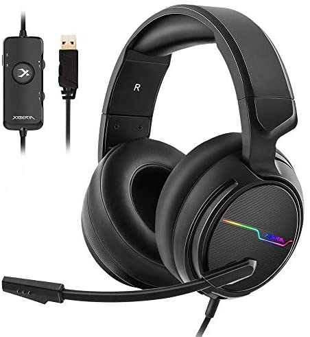 • Jeecoo Xiberia USB Pro Gaming Headset for PC- 7.1 Surround Sound Headphones with Noise Cancelling Mic- Memory Foam Ear Pads RGB Lights for Laptops