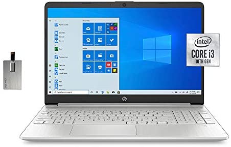• 2020 HP 15.6″ HD Micro-Edge Laptop Computer, 10th Gen Intel Core i3-1005G1, 8GB RAM, 256GB PCIe SSD, Intel UHD Graphics, Speakers, HD Webcam, USB-C, Bluetooth, Win 10S, Silver, 32GB SnowBell USB Card