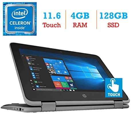 • HP ProBook x360 11 EE G3 2-in-1 11.6-inch Touchscreen Display Laptop PC (Intel Quad Core Celeron N4100 Processor, 4GB RAM,128GB Solid State Drive, Bluetooth, HDMI, Webcam, WiFi, Windows 10 Pro)