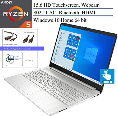 • 2020 HP 15.6″ Touchscreen Laptop Computer, Quad-Core AMD Ryzen 5 3500U (Beats i7-7500U), 802.11ac WiFi, Bluetooth 4.2, Type-C, HDMI, Silver, Windows 10+ CUE Accessories (12GB DDR4 RAM, 512GB PCIe SSD)