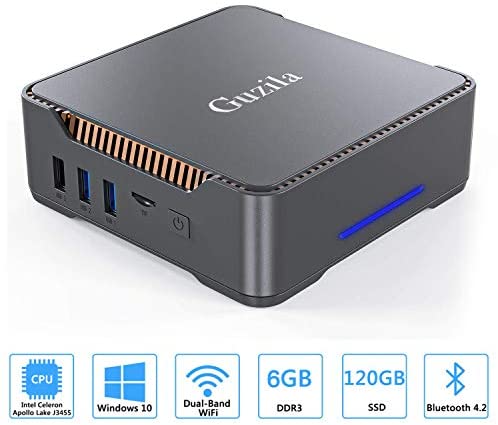• Mini PC, Intel Celeron J3455 Processor(up to 2.3GHz) Windows 10 Pro(64-bit) Mini Desktop Computer with HDMI/VGA Port,6GB DDR3/120GB SSD,Gigabit Ethernet,Dual Band Wi-Fi,Bluetooth 4.2,4K HD