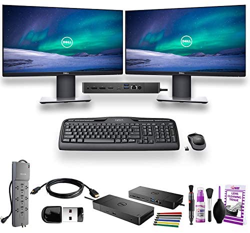 • Home Office – Dual Dell Monitor Bundle – 2 Dell P2219H 22″ Monitors with Dell WD19 Dock – Logitech Keyboard and Mouse – Surge Protector – HDMI Wire, USB Key, and More