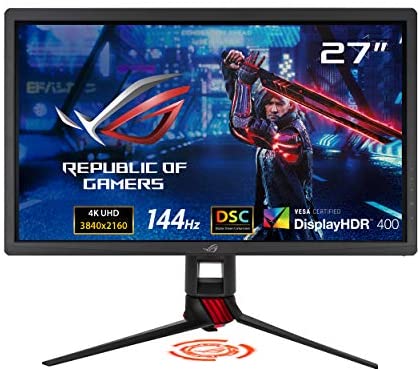 • ASUS ROG Strix XG27UQ 27” HDR DSC Gaming Monitor, 4K (3840 x 2160), 144Hz, IPS, 1ms, Adaptive Sync, DisplayHDR 400, DCI-P3 90%, Eye Care, HDMI DisplayPort USB, Aura Sync